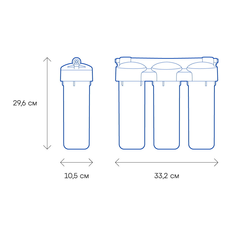 Три картриджа последовательно очищают воду от видимых механических примесей и растворенных вредных веществ. Минимализм конструкции и высокоэффективные сорбенты позволяют Трио обеспечить отличное соотношение стоимости владения фильтром к высокого качества очистки.