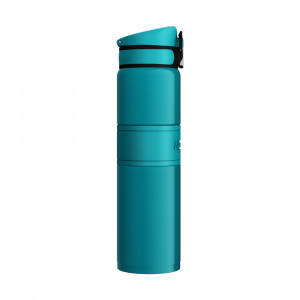 • Двойные стенки термоса изготовлены из нержавеющей стали. Они сохраняют температуру напитка до 6 часов. Благодаря дополнительному силиконовому покрытию изделие не выскальзывает из рук на морозе. Объем термоса — 480 мл.