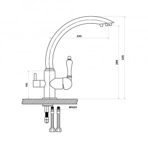 Габариты325 х 230 ммВысота излива285 ммВынос излива230 ммВыдвижной изливНет