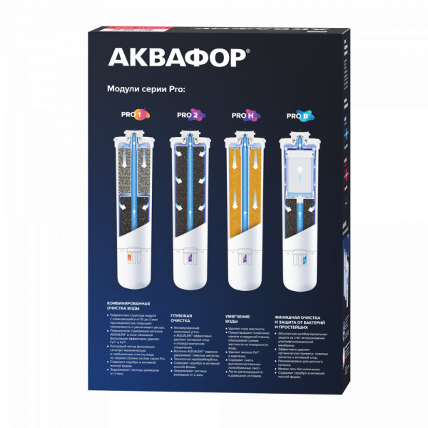 Модуль Pro H рассчитан на воду малой или средней жесткости (до 5 мг-экв/л) и требует регенерации соляным раствором, при высокой жесткости — раз в 2-3 недели.