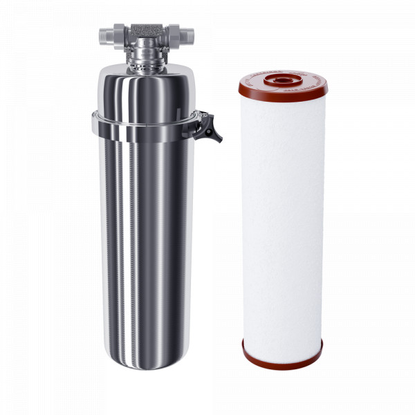 • Магистральный фильтр из нержавеющей стали со сменным полипропиленовым модулем. Обеспечивает базовую предочистку воды во всей квартире, при этом напор остается практически без изменений.